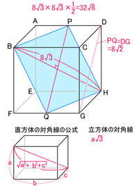 立方体における ひし形の面積の求め方を教えてください 以下の条件で対角 Yahoo 知恵袋